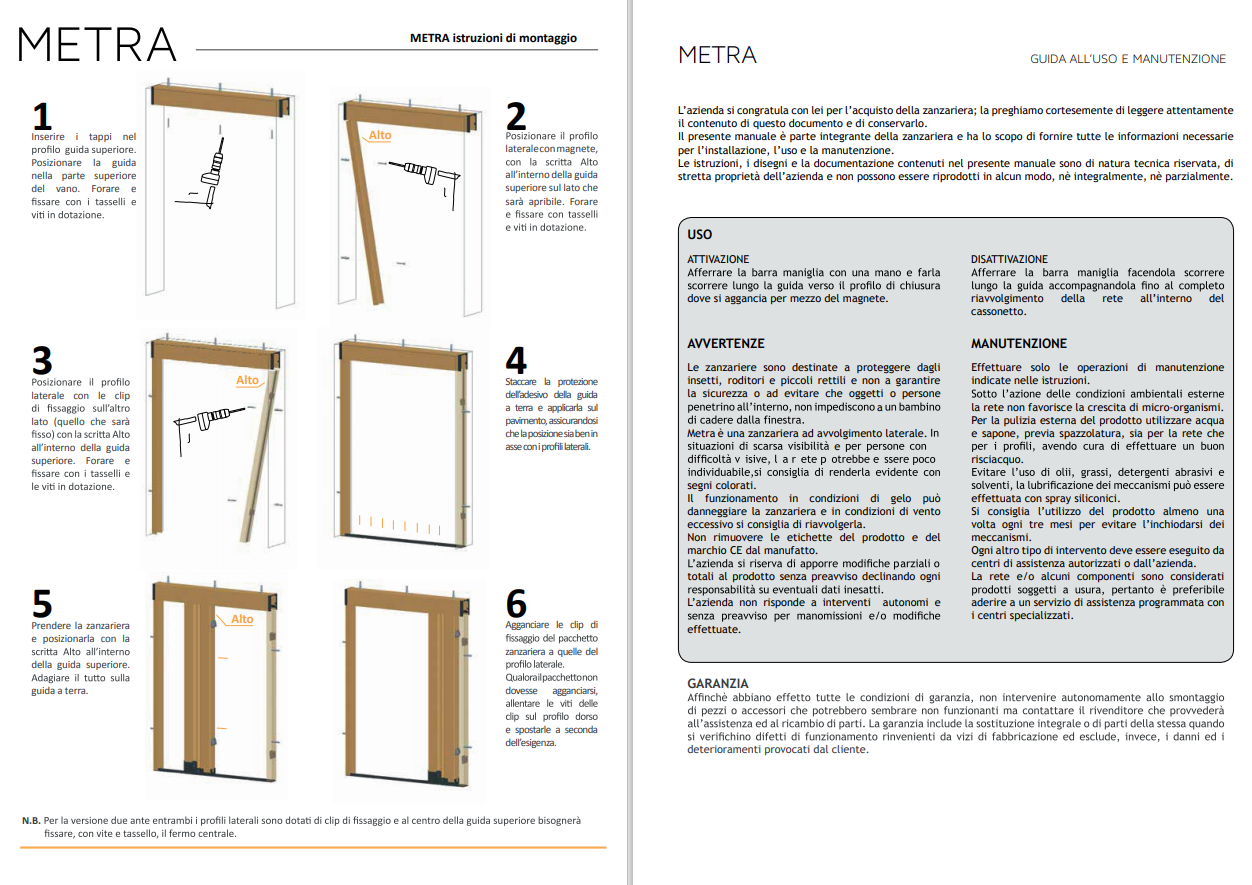 Metra è la nostra proposta di zanzariera a telo liscio con sistema flessometrico nella guida superiore e sistema a carrarmato sulla guida inferiore. Grazie alla configurazione modulare è possibile chiudere grandi dimensioni. Prestare attenzione a richiedere la misura corretta. Per richiedere una misura specifica selezionare i valori di larghezza/altezza più simili per eccesso e subito dopo l'ordine inviare tramite messaggio privato le misure esatte. Essendo un prodotto su misura, per la preparazione del suo ordine andranno via all'incirca 10 giorni lavorativi.