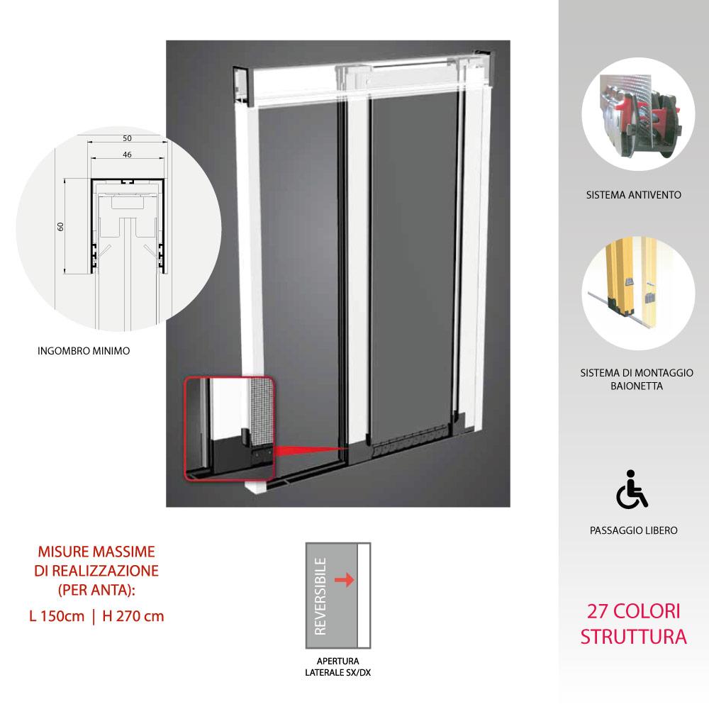 Oltre i 150 cm di larghezza, verrà fornita automaticamente la zanzariera da 2 ante.  Dai 300 cm, verrà fornita la 3 ante. Dai 450 cm, verrà fornita quella da 4 ante.