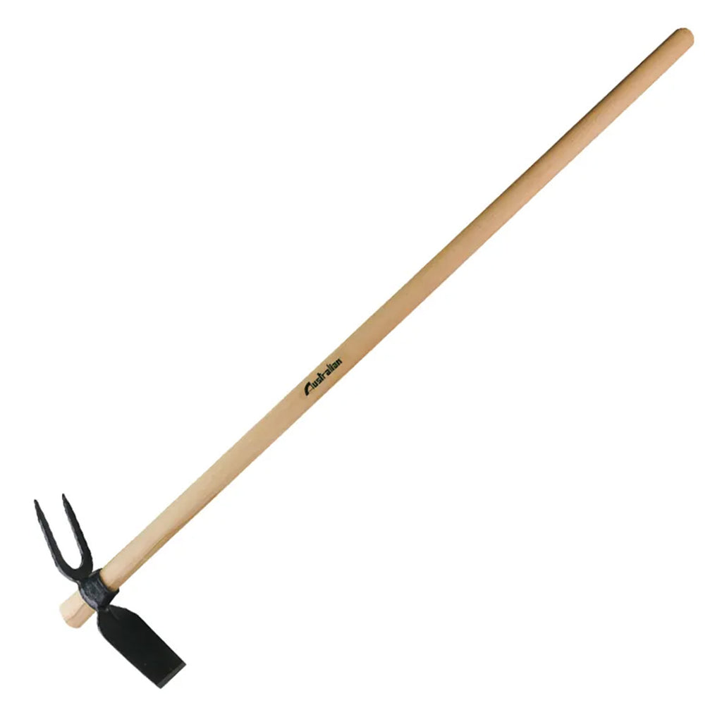 Il manico della zappa bidente è solitamente realizzato in legno resistente come frassino o quercia. È progettato per offrire una presa salda e comoda durante l'uso, con un'impugnatura ergonomica che riduce l'affaticamento delle mani.