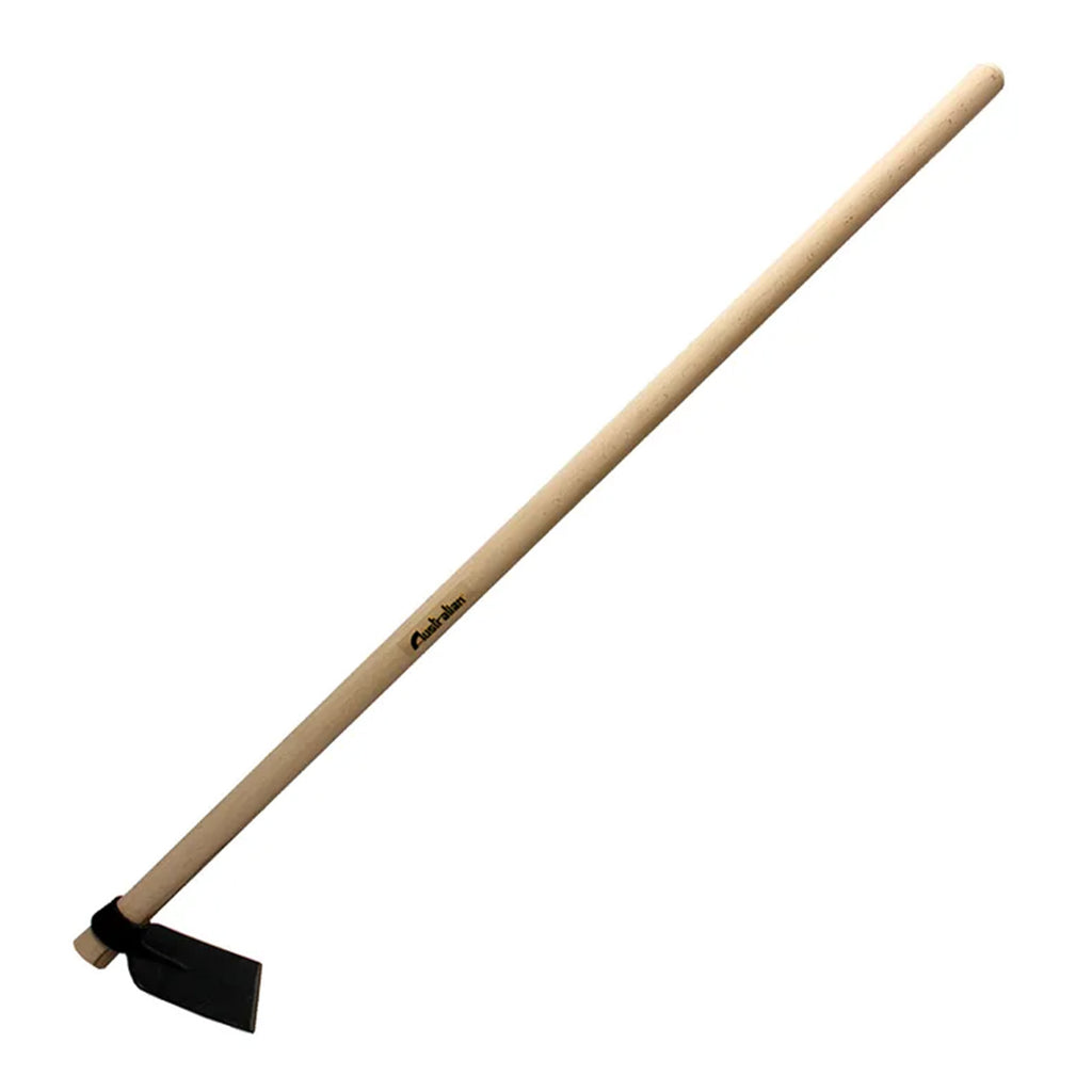 L'asta della zappa è solitamente lunga e viene impugnata con entrambe le mani. Nella parte superiore dell'asta, di solito c'è una presa ergonomica che offre una buona aderenza e comfort durante l'uso. Alcuni modelli possono avere un'estremità curva o un'impugnatura a forma di "D" per facilitare la presa.